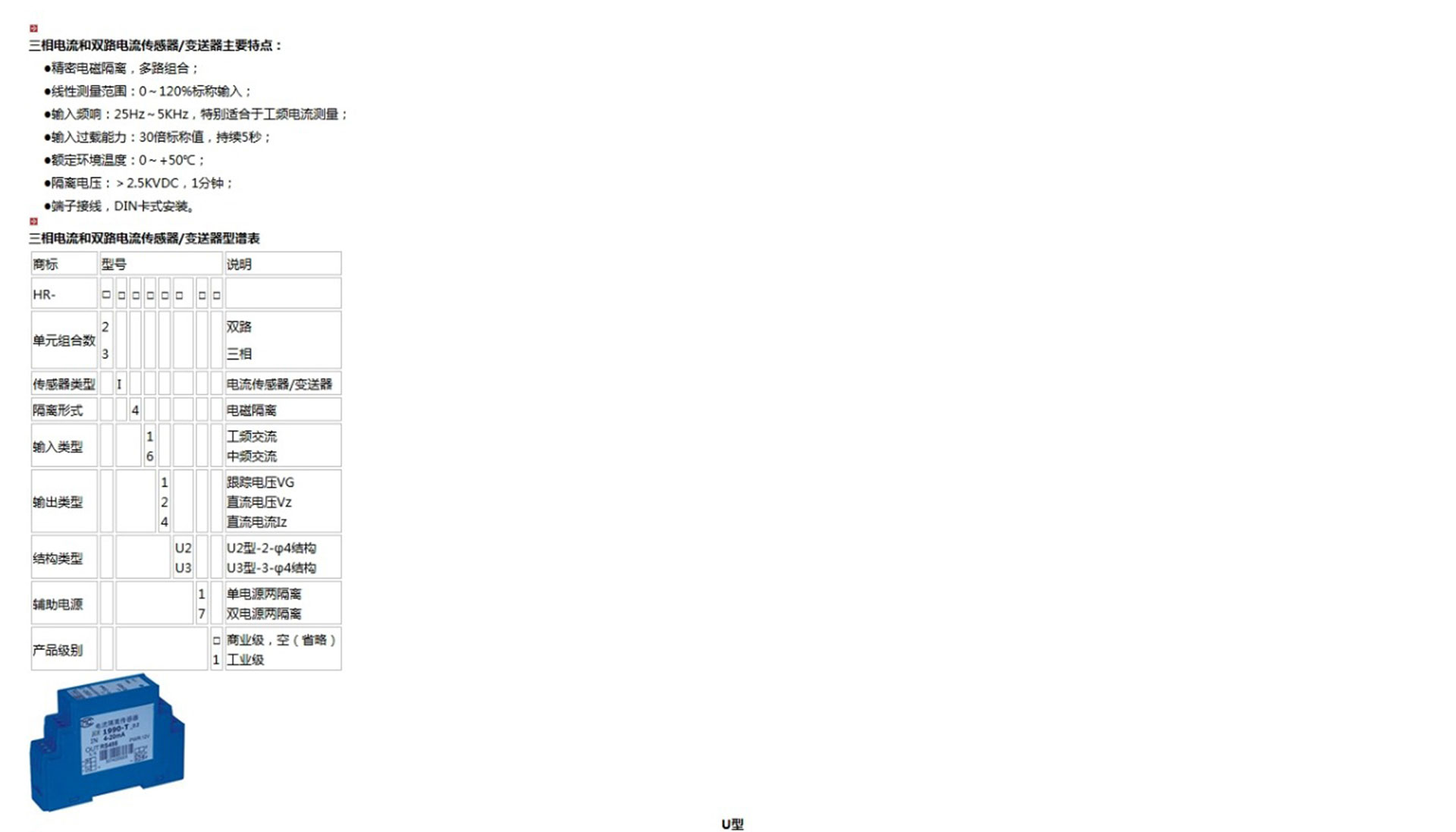 三相電流和雙路電流傳感器/變送器